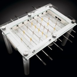Aujourd’hui je vous presente un objet luxueux…un truc vraiment design alias un babyfoot extrêmement luxueux Conçu en acier, aluminium et en verre, ce babyfoot a un habillage qui donne un aspect stylisé à cet objet nommé “Lux Minimalist Football”.